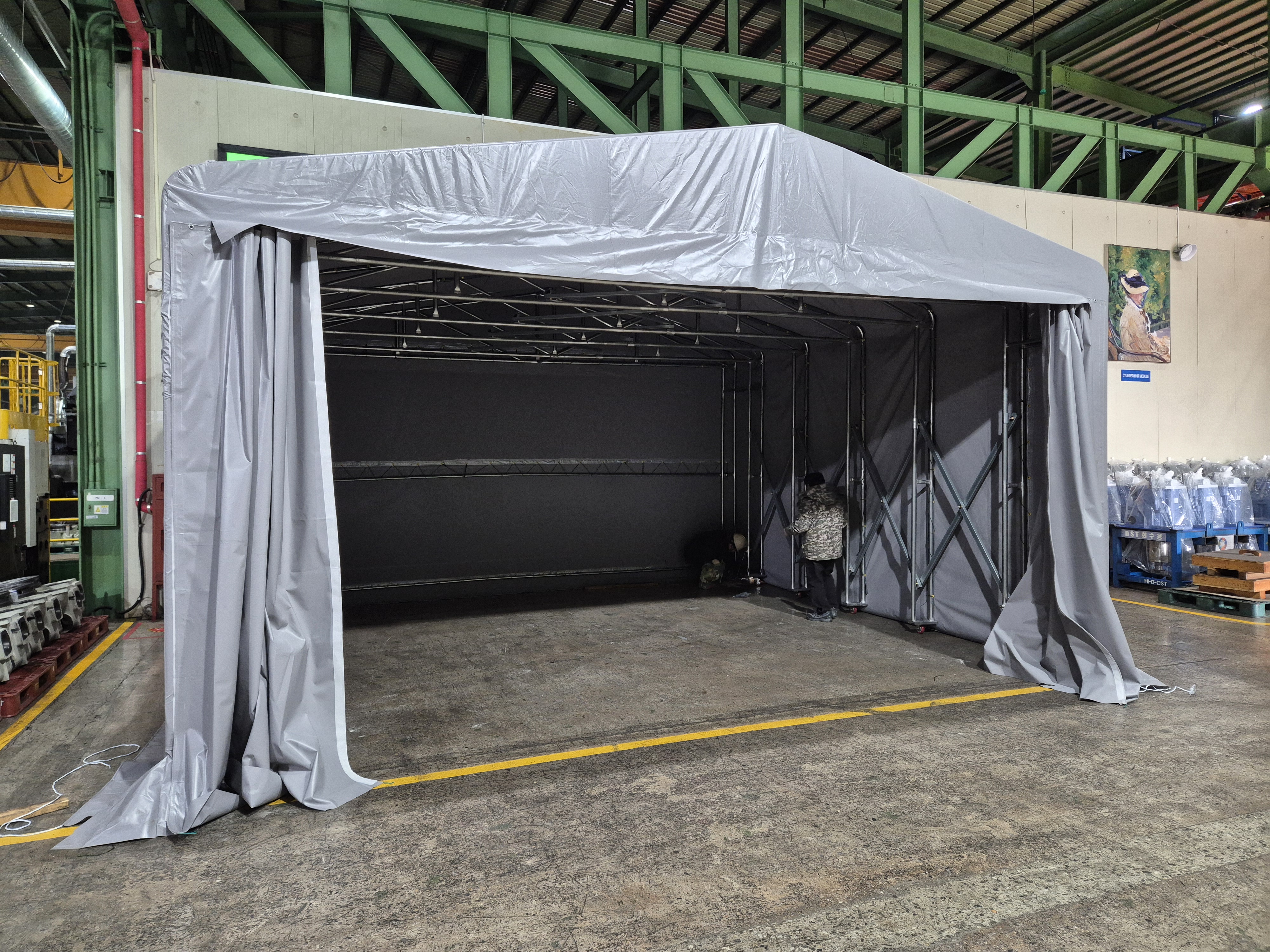 구미 석적공단 공장 내 이동·접이식 자바라 천막 설치
