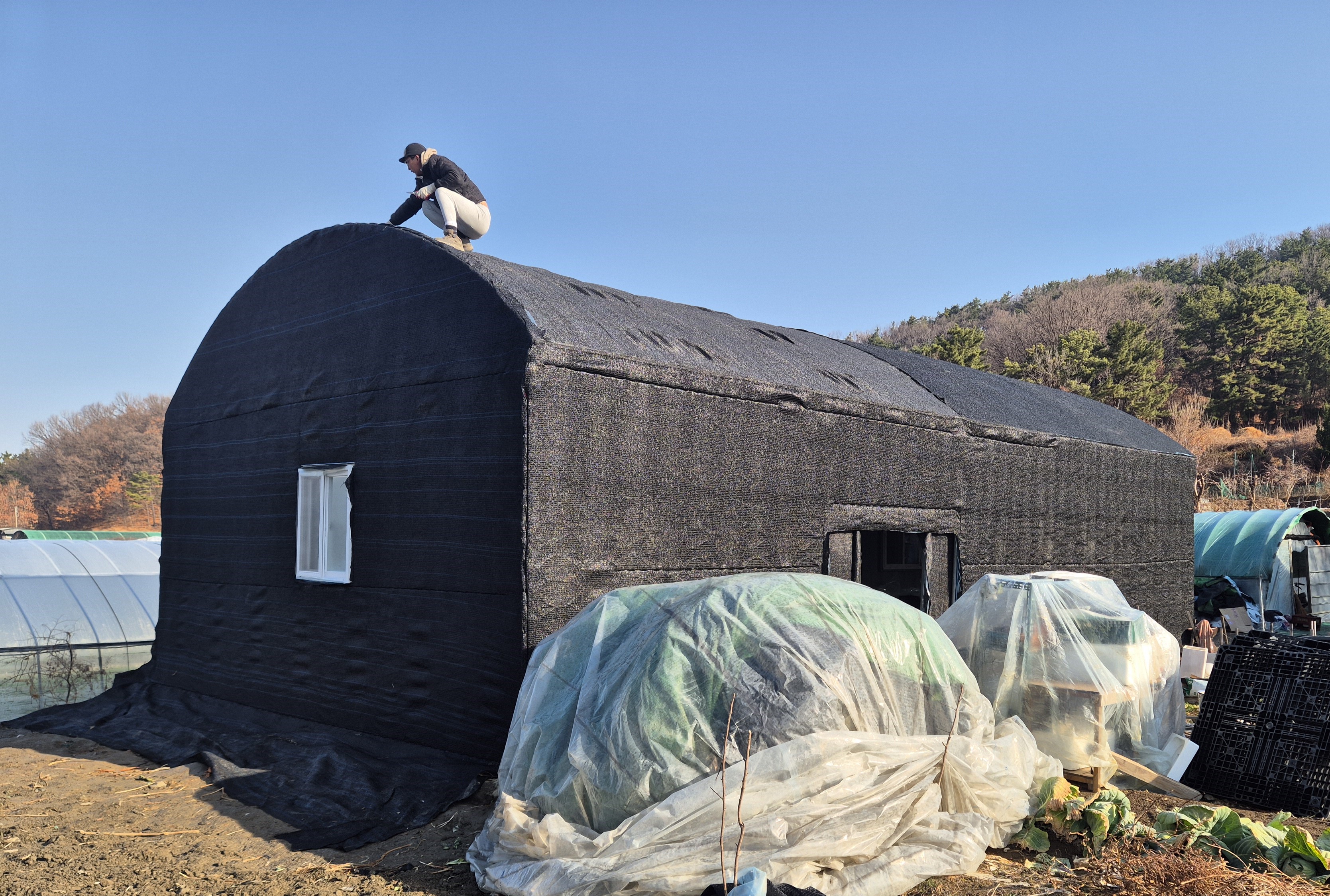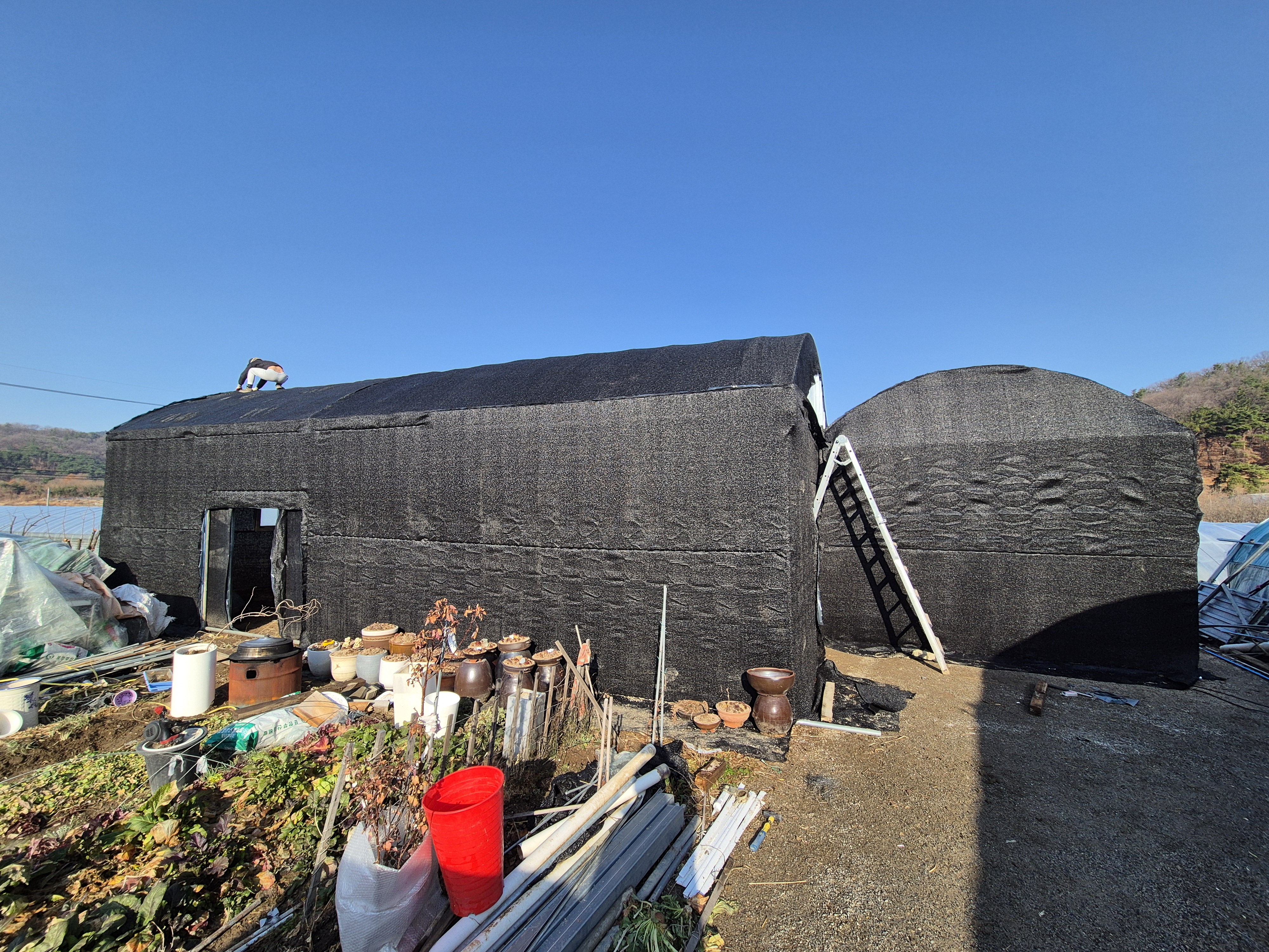 스카이어닝 결합형 (렉산 + 커튼식 비닐 천막) 설치